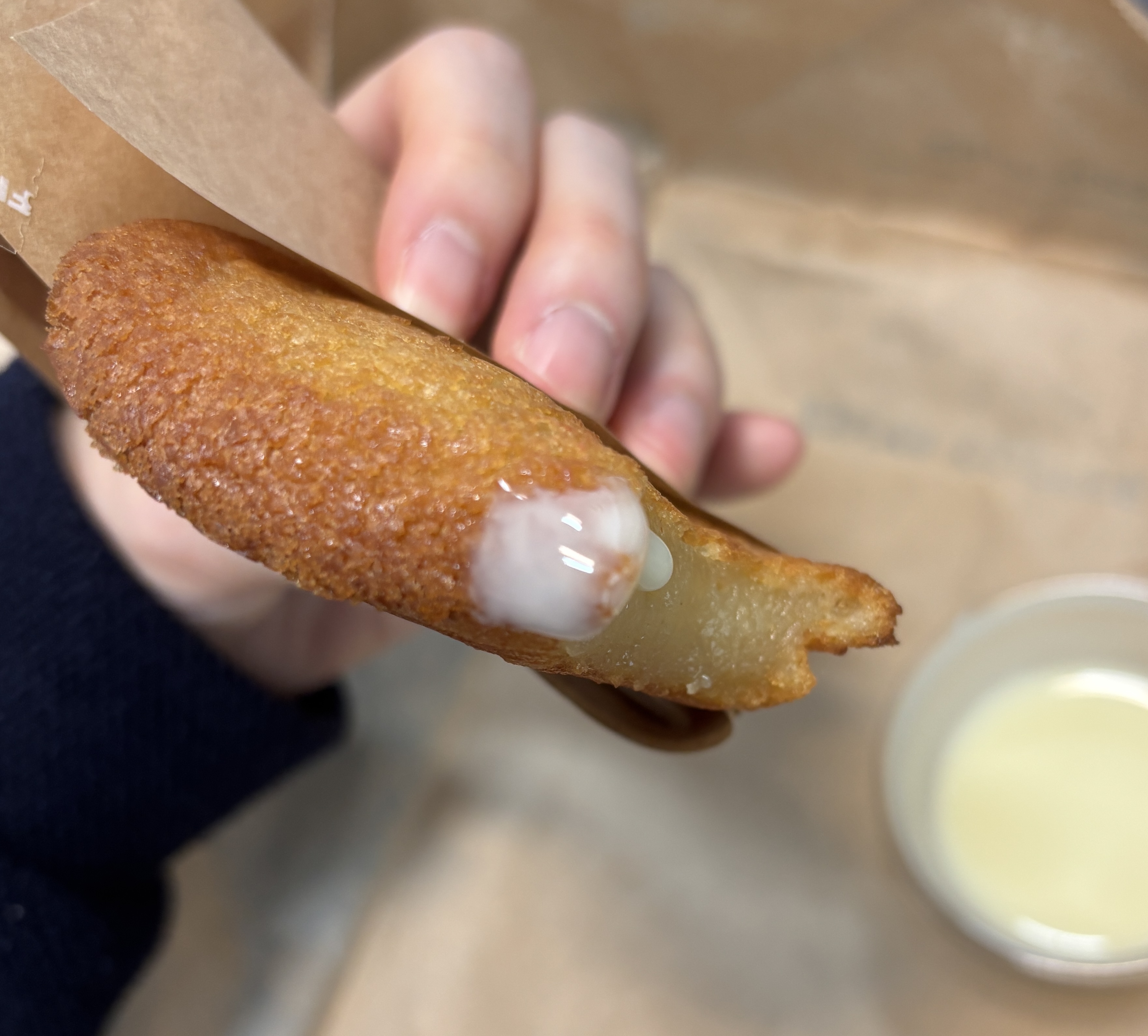 구체적으론 찹쌀도너츠보다 끝이 좀 더 크리스피하고 안쪽은 좀 더 부드럽다. 당연히 맛은 있음.